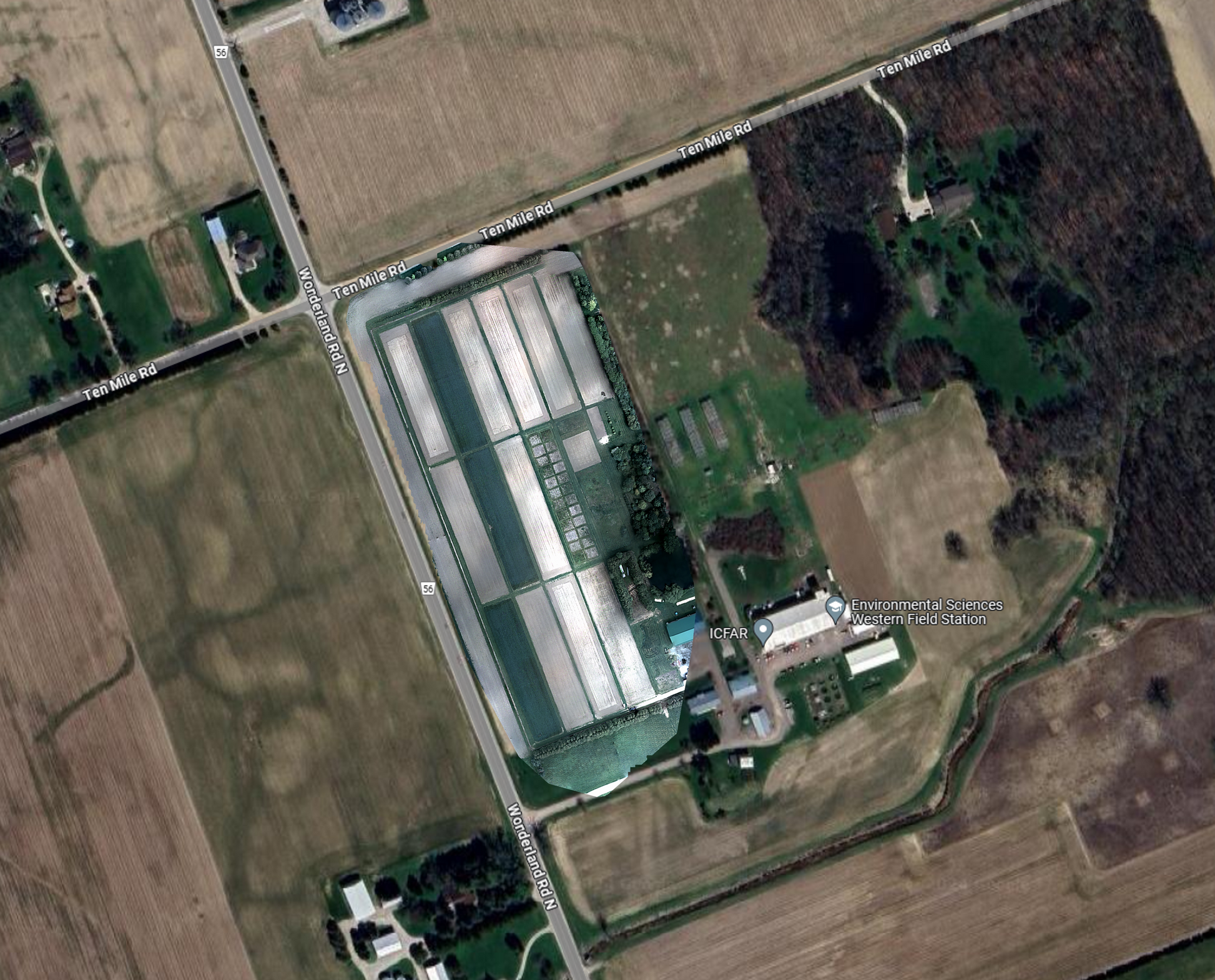 The Open Drone Maps software WebODM was used to reconstruct multispectral orthomap. Using the geo-references from image metadata WebODM displays the reconstructed orthomosaic map overlaid on the satellite imagery or street maps.